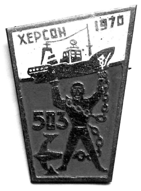 Нам, конструкторам, тоже не хотелось в такую погоду зря болтаться на холоде, Мы сидели в нашем помещении, выпускали рабочие эскизы или просто болтали (в редкие свободные минуты). В одну из таких минут у А. Г. Полянкера (или «Поль Анкер», как мы его иногда называли) появилась идея придумать и изготовить на заводе памятный знак в честь и по поводу сдачи «Альпиниста». Начали осуществление этой идеи с заводского фотографа. Показали ему «Альпинист», кинули идею знака (конструктор, опутанный цепями правил и инструкций, держит судно на поднятых руках), договорились о цене и стали ждать. Дней через 10 фотограф вывалил нам груду значков, получил деньги и ушел. Значки нам понравились, мы даже их пронумеровали, выделив первые номера для Г.П.Дубского и М.А.Каца. И только через какое-то время увидели, что фотограф вместо нашего «Альпиниста» изобразил судно 502Э. Мы, правда, быстро утешились, вспомнив, что, например, почтовая марка, выпущенная с какой-либо неточностью, всегда очень ценится.